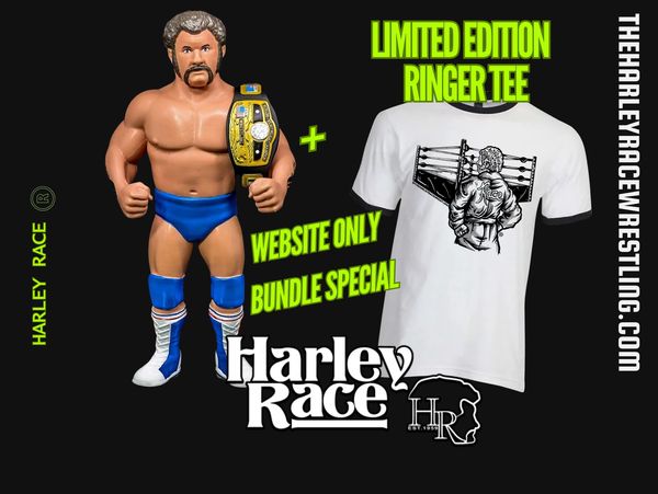 HERE ONLY CAN YOU GET THE FAMED HARLEY RACE SERIES 9 BIG RUBBER GUY FIGURE AND THIS LIMITED EDITION RINGER TEE BUNDLE FOR 70$ (FREE S&H US)